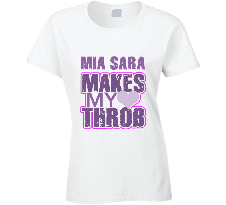 Order your very own Mia Sara Makes My Heart Throb Funny Sexy Ladies Trending Fan T Shirt. It won’t be around forever so buy yours here today! Shop our huge selection of high quality, graphic apparel. Each design is offered on a variety of sizes and styles including; t shirts, hoodies, aprons and even baby one-pieces! This product is pre-treated to ensure quality and longevity of the graphic.