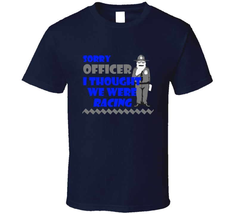 Order your very own Sorry Officer Racing Funny Police Modified Cars Fan T Shirt. It won’t be around forever so buy yours here today! Shop our huge selection of high quality, graphic apparel. Each design is offered on a variety of sizes and styles including; t shirts, hoodies, aprons and even baby one-pieces! This product is pre-treated to ensure quality and longevity of the graphic.