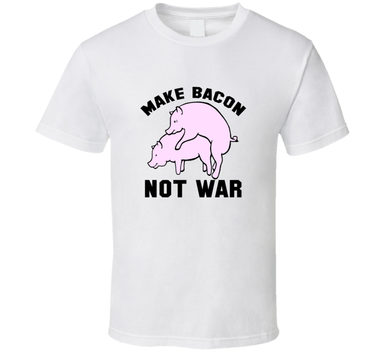 Order your very own Make Bacon Not War Peace Love Trending T Shirt. It won’t be around forever so buy yours here today! Shop our huge selection of high quality, graphic apparel. Each design is offered on a variety of sizes and styles including; t shirts, hoodies, aprons and even baby one-pieces! This product is pre-treated to ensure quality and longevity of the graphic.