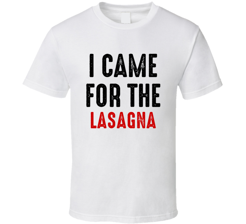 Order your very own I Came For Lasagna Food T Shirt. It won’t be around forever so buy yours here today! Shop our huge selection of high quality, graphic apparel. Each design is offered on a variety of sizes and styles including; t shirts, hoodies, aprons and even baby one-pieces! This product is pre-treated to ensure quality and longevity of the graphic.