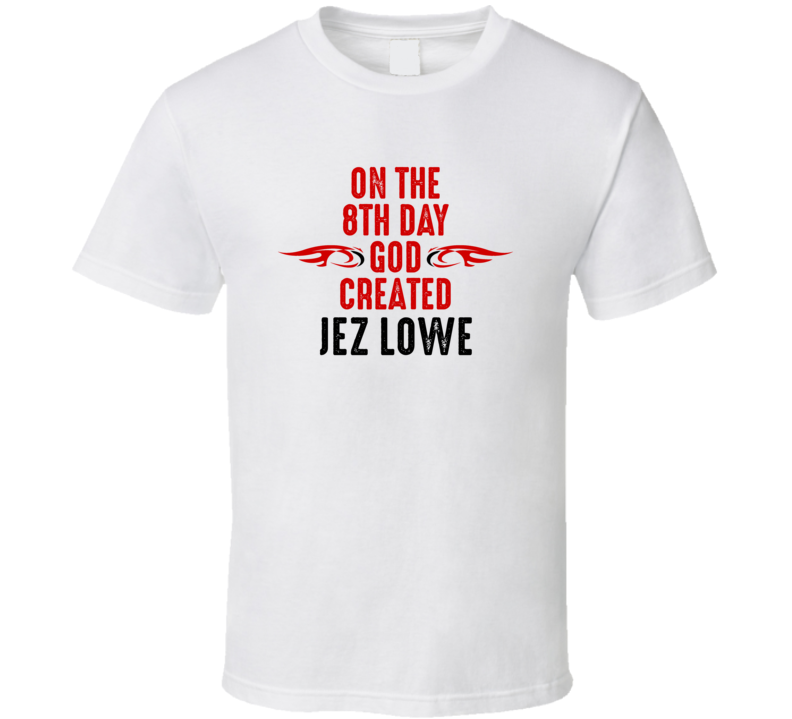 Order your very own On The Eigth Day God Created Jez Lowe Celebrities T Shirt. It won’t be around forever so buy yours here today! Shop our huge selection of high quality, graphic apparel. Each design is offered on a variety of sizes and styles including; t shirts, hoodies, aprons and even baby one-pieces! This product is pre-treated to ensure quality and longevity of the graphic.