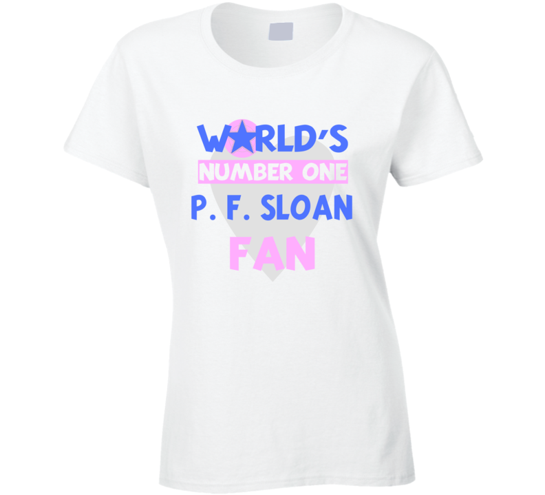 Order your very own Worlds Number One Fan P. F. Sloan Celebrities T Shirt. It won’t be around forever so buy yours here today! Shop our huge selection of high quality, graphic apparel. Each design is offered on a variety of sizes and styles including; t shirts, hoodies, aprons and even baby one-pieces! This product is pre-treated to ensure quality and longevity of the graphic.