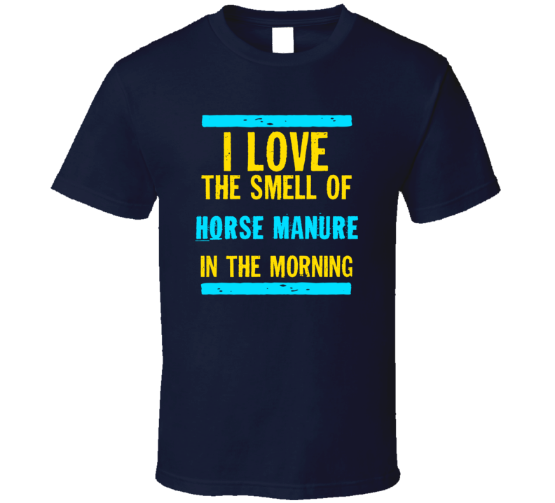 Order your very own I Love The Smell Of Horse Manure Funny T Shirt. It won’t be around forever so buy yours here today! Shop our huge selection of high quality, graphic apparel. Each design is offered on a variety of sizes and styles including; t shirts, hoodies, aprons and even baby one-pieces! This product is pre-treated to ensure quality and longevity of the graphic.