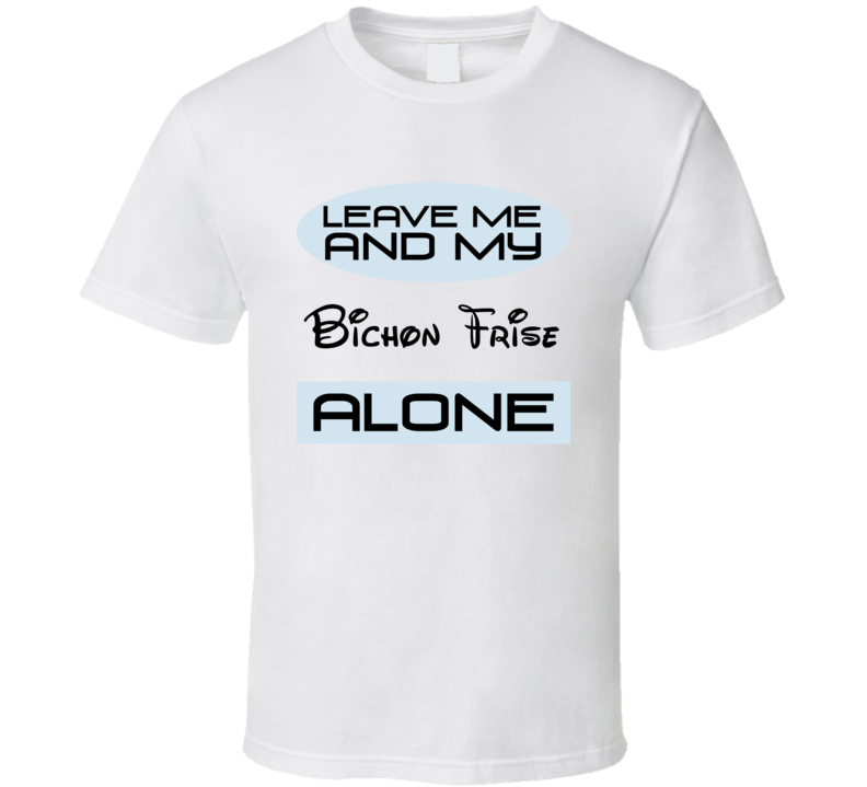 Order your very own Leave Me And My Bichon Frise Alone Funny Blue T Shirt. It won’t be around forever so buy yours here today! Shop our huge selection of high quality, graphic apparel. Each design is offered on a variety of sizes and styles including; t shirts, hoodies, aprons and even baby one-pieces! This product is pre-treated to ensure quality and longevity of the graphic.