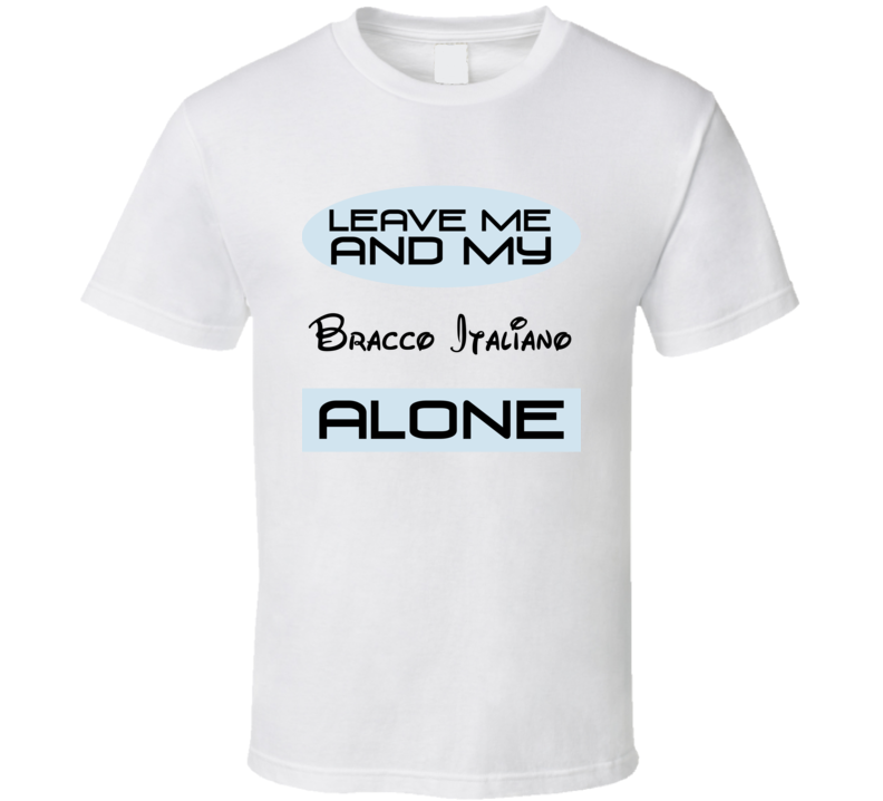 Order your very own Leave Me And My Bracco Italiano Alone Funny Blue T Shirt. It won’t be around forever so buy yours here today! Shop our huge selection of high quality, graphic apparel. Each design is offered on a variety of sizes and styles including; t shirts, hoodies, aprons and even baby one-pieces! This product is pre-treated to ensure quality and longevity of the graphic.