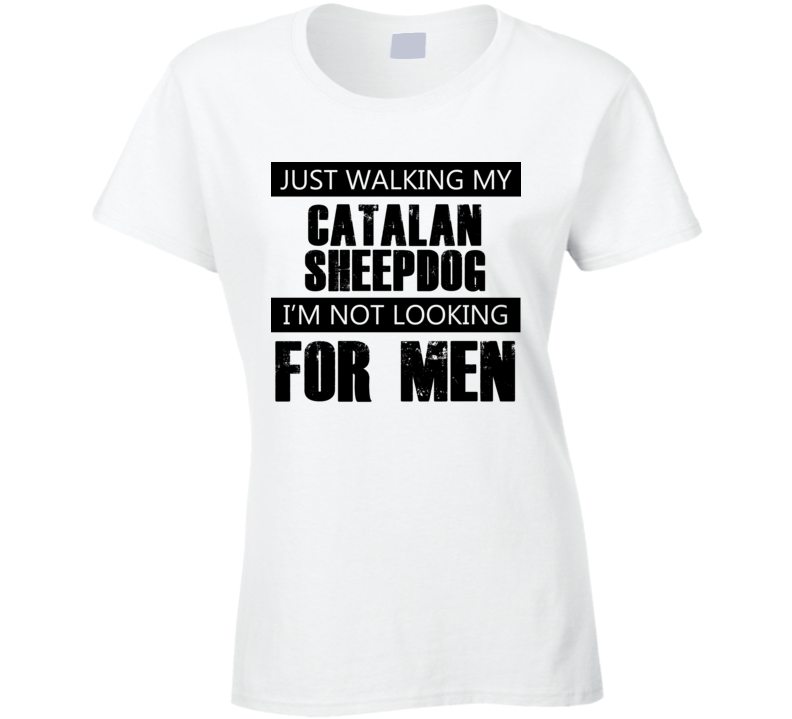 Just Walking My Dog Catalan Sheepdog Not Looking For Men Funny T Shirt