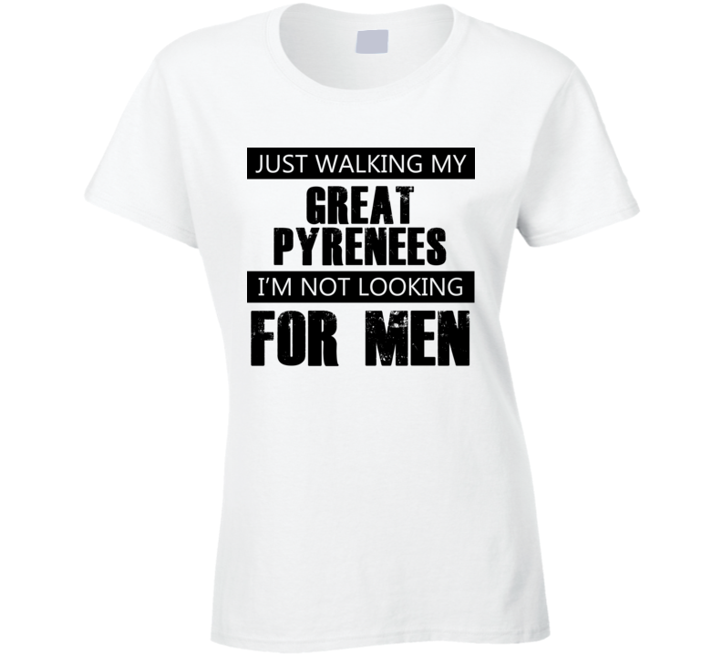 Just Walking My Dog Great Pyrenees Not Looking For Men Funny T Shirt