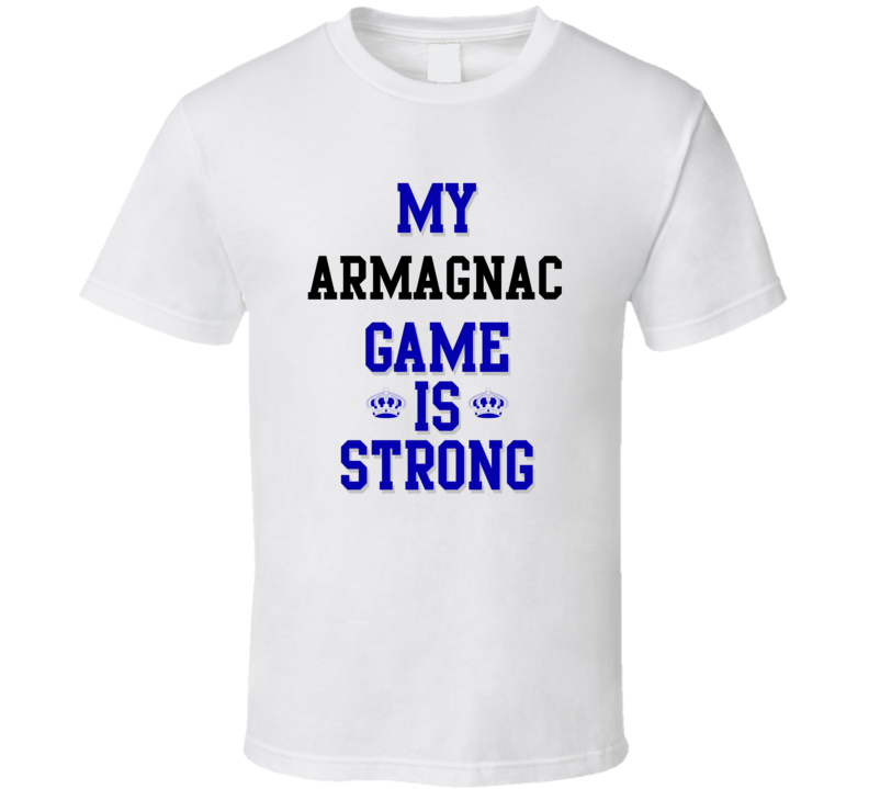Order your very own My Armagnac Game Is Strong Funny Sport Drink Hobby Trending Fan T Shirt. It won’t be around forever so buy yours here today! Shop our huge selection of high quality, graphic apparel. Each design is offered on a variety of sizes and styles including; t shirts, hoodies, aprons and even baby one-pieces! This product is pre-treated to ensure quality and longevity of the graphic.