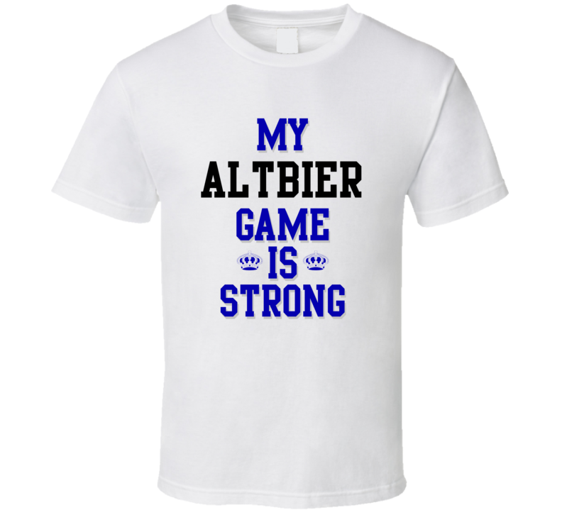 Order your very own My Altbier Game Is Strong Funny Sport Drink Hobby Trending Fan T Shirt. It won’t be around forever so buy yours here today! Shop our huge selection of high quality, graphic apparel. Each design is offered on a variety of sizes and styles including; t shirts, hoodies, aprons and even baby one-pieces! This product is pre-treated to ensure quality and longevity of the graphic.