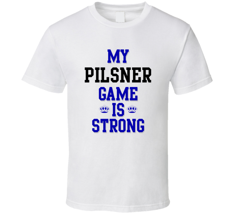 Order your very own My Pilsner Game Is Strong Funny Sport Drink Hobby Trending Fan T Shirt. It won’t be around forever so buy yours here today! Shop our huge selection of high quality, graphic apparel. Each design is offered on a variety of sizes and styles including; t shirts, hoodies, aprons and even baby one-pieces! This product is pre-treated to ensure quality and longevity of the graphic.