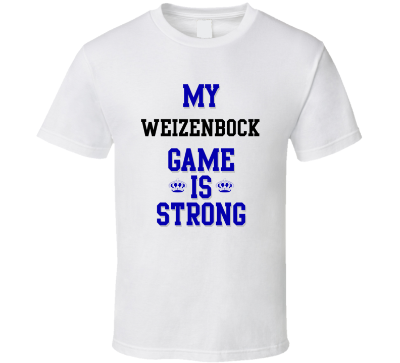 Order your very own My Weizenbock Game Is Strong Funny Sport Drink Hobby Trending Fan T Shirt. It won’t be around forever so buy yours here today! Shop our huge selection of high quality, graphic apparel. Each design is offered on a variety of sizes and styles including; t shirts, hoodies, aprons and even baby one-pieces! This product is pre-treated to ensure quality and longevity of the graphic.