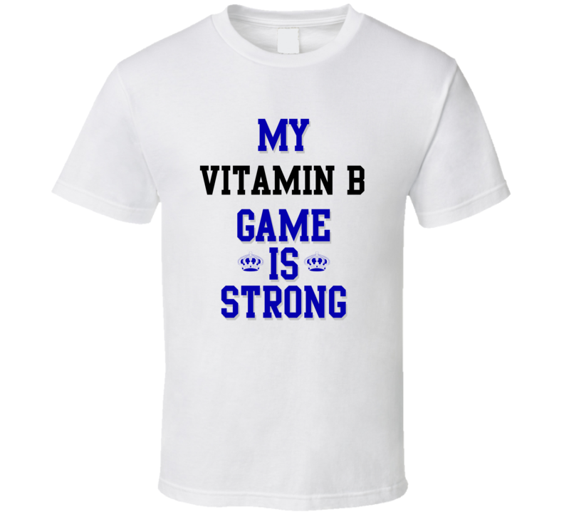 Order your very own My vitamin B Game Is Strong Funny Sport Drink Hobby Trending Fan T Shirt. It won’t be around forever so buy yours here today! Shop our huge selection of high quality, graphic apparel. Each design is offered on a variety of sizes and styles including; t shirts, hoodies, aprons and even baby one-pieces! This product is pre-treated to ensure quality and longevity of the graphic.