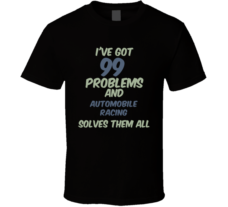 99 Problems Automobile Racing Solves Them All Funny Sports Hobby T Shirt