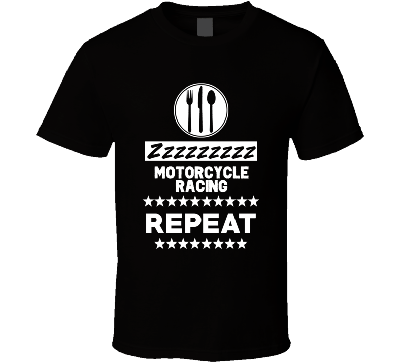 Order your very own Eat Sleep Motorcycle Racing Repeat Funny Sports Hobby Gym T Shirt. It won’t be around forever so buy yours here today! Shop our huge selection of high quality, graphic apparel. Each design is offered on a variety of sizes and styles including; t shirts, hoodies, aprons and even baby one-pieces! This product is pre-treated to ensure quality and longevity of the graphic.