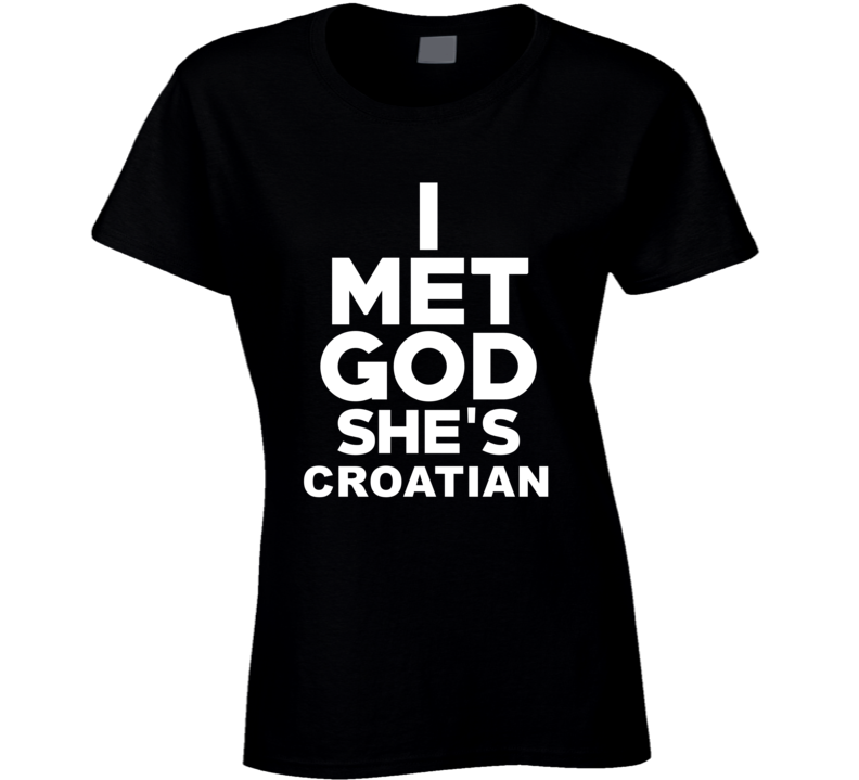 Order your very own I Met God Shes Croatian Funny Faith Parody Religion T Shirt. It won’t be around forever so buy yours here today! Shop our huge selection of high quality, graphic apparel. Each design is offered on a variety of sizes and styles including; t shirts, hoodies, aprons and even baby one-pieces! This product is pre-treated to ensure quality and longevity of the graphic.
