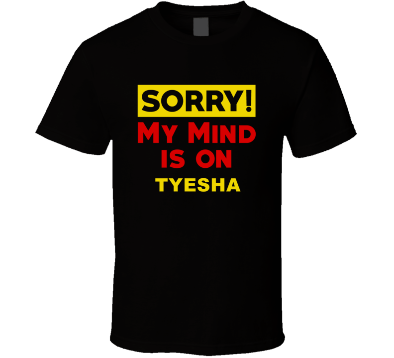 Order your very own Sorry My Mind Is On Tyesha Funny Parody T Shirt. It won’t be around forever so buy yours here today! Shop our huge selection of high quality, graphic apparel. Each design is offered on a variety of sizes and styles including; t shirts, hoodies, aprons and even baby one-pieces! This product is pre-treated to ensure quality and longevity of the graphic.