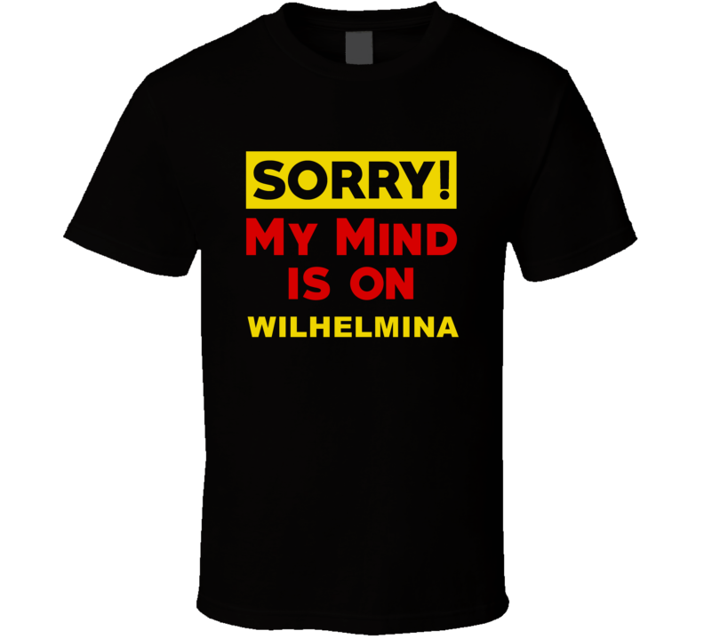Order your very own Sorry My Mind Is On Wilhelmina Funny Parody T Shirt. It won’t be around forever so buy yours here today! Shop our huge selection of high quality, graphic apparel. Each design is offered on a variety of sizes and styles including; t shirts, hoodies, aprons and even baby one-pieces! This product is pre-treated to ensure quality and longevity of the graphic.