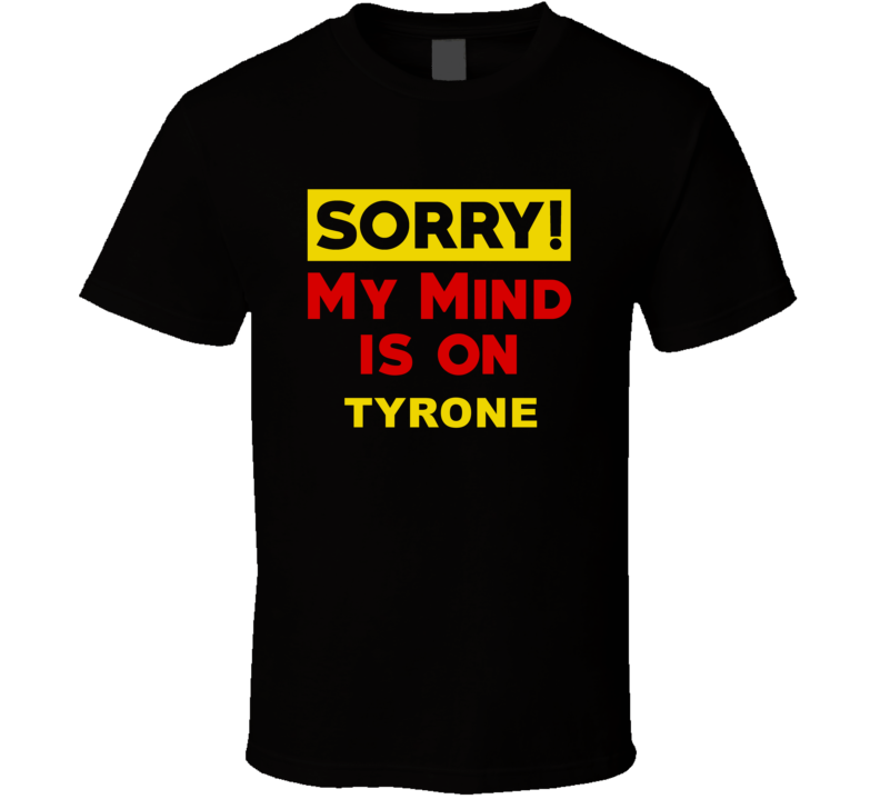 Order your very own Sorry My Mind Is On Tyrone Funny Parody T Shirt. It won’t be around forever so buy yours here today! Shop our huge selection of high quality, graphic apparel. Each design is offered on a variety of sizes and styles including; t shirts, hoodies, aprons and even baby one-pieces! This product is pre-treated to ensure quality and longevity of the graphic.