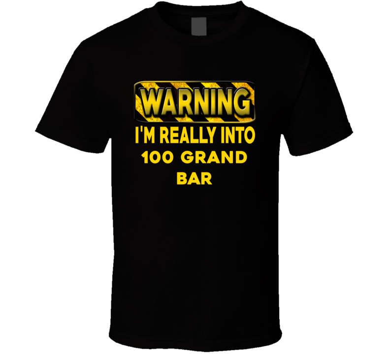 Order your very own Warning I'm Really Into 100 Grand Bar Funny Sports Food Booze T Shirt. It won’t be around forever so buy yours here today! Shop our huge selection of high quality, graphic apparel. Each design is offered on a variety of sizes and styles including; t shirts, hoodies, aprons and even baby one-pieces! This product is pre-treated to ensure quality and longevity of the graphic.