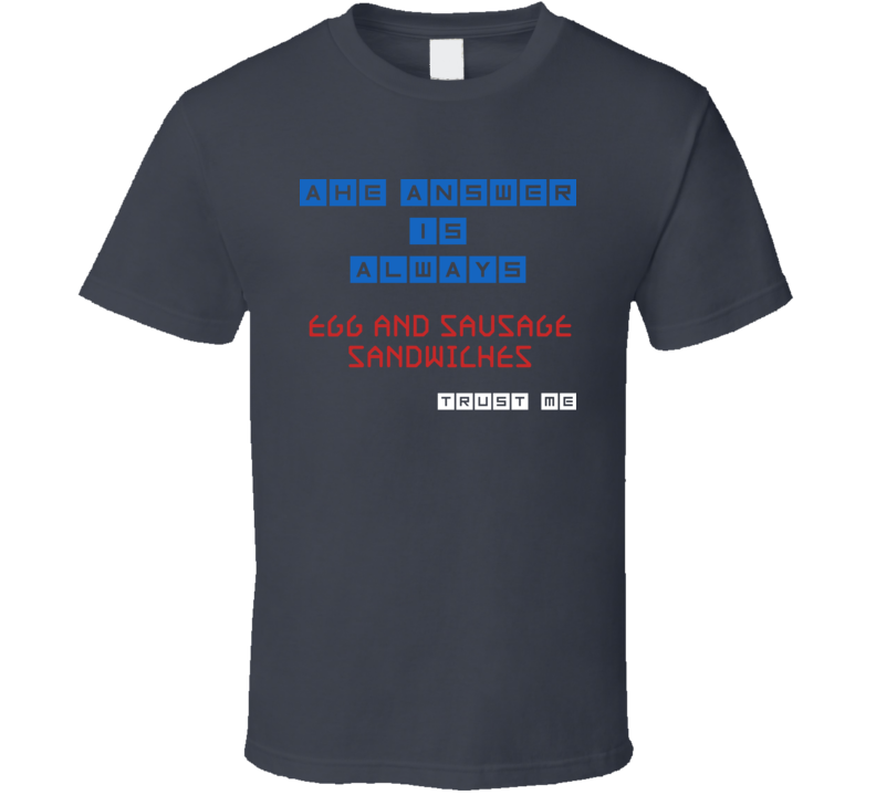The Answer Is Egg And Sausage Sandwiches Funny Junk Food Booze T Shirt