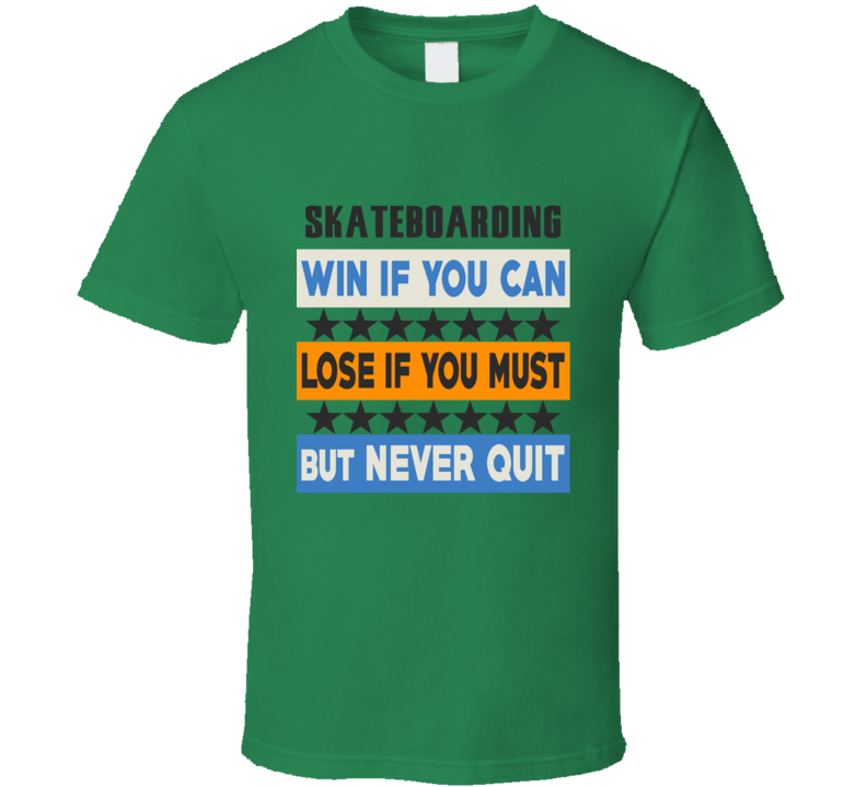 Order your very own Skateboarding Win Lose Never Quit Team Sport Gym T Shirt. It won’t be around forever so buy yours here today! Shop our huge selection of high quality, graphic apparel. Each design is offered on a variety of sizes and styles including; t shirts, hoodies, aprons and even baby one-pieces! This product is pre-treated to ensure quality and longevity of the graphic.