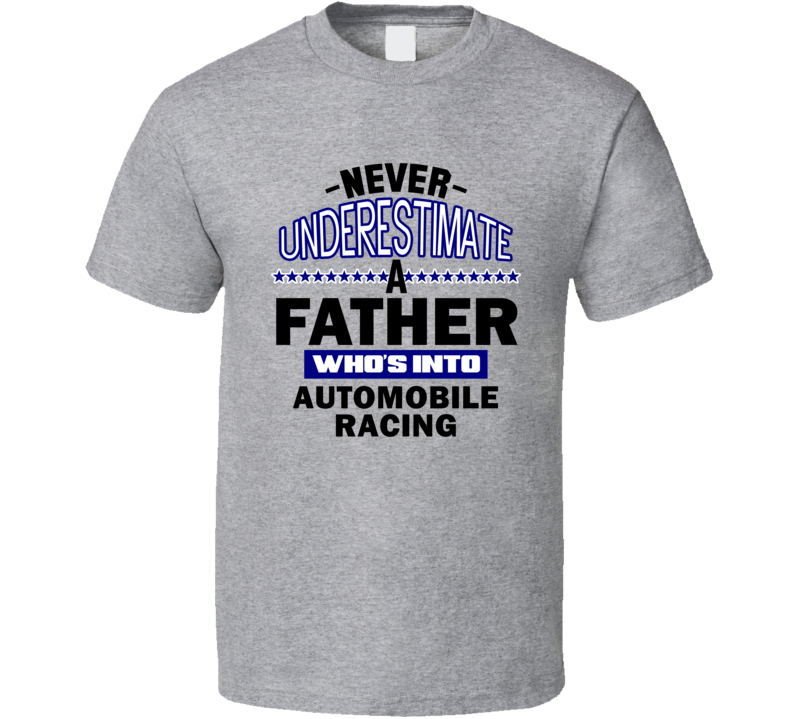 Order your very own Automobile Racing Never Underestimate Father's Day Funny T Shirt. It won’t be around forever so buy yours here today! Shop our huge selection of high quality, graphic apparel. Each design is offered on a variety of sizes and styles including; t shirts, hoodies, aprons and even baby one-pieces! This product is pre-treated to ensure quality and longevity of the graphic.