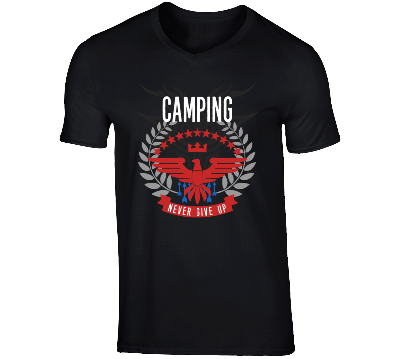 Order your very own Camping Never Give Up Sports Hobbies Vices T Shirt. It won’t be around forever so buy yours here today! Shop our huge selection of high quality, graphic apparel. Each design is offered on a variety of sizes and styles including; t shirts, hoodies, aprons and even baby one-pieces! This product is pre-treated to ensure quality and longevity of the graphic.