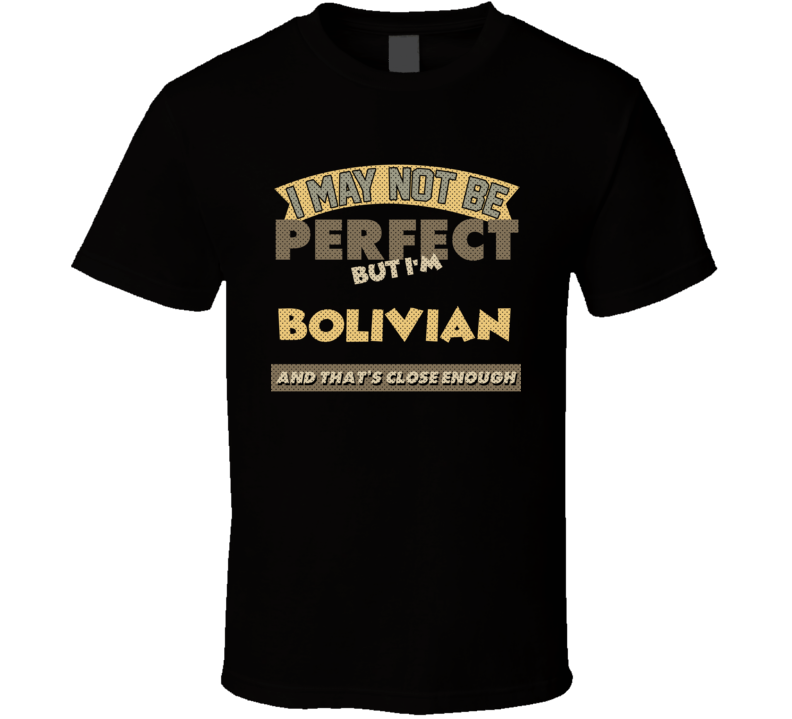 Order your very own Bolivian I May Not Be Perfect Bolivia Funny Country T Shirt. It won’t be around forever so buy yours here today! Shop our huge selection of high quality, graphic apparel. Each design is offered on a variety of sizes and styles including; t shirts, hoodies, aprons and even baby one-pieces! This product is pre-treated to ensure quality and longevity of the graphic.