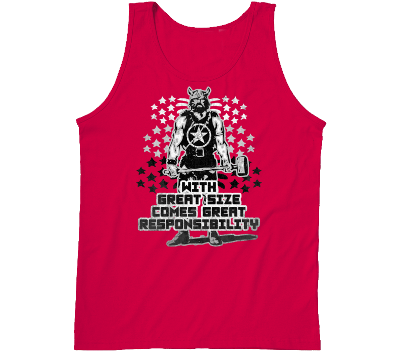 Order your very own With Great Size Responsibility Gym Lifting Training Tanktop. It won’t be around forever so buy yours here today! Shop our huge selection of high quality, graphic apparel. Each design is offered on a variety of sizes and styles including; t shirts, hoodies, aprons and even baby one-pieces! This product is pre-treated to ensure quality and longevity of the graphic.