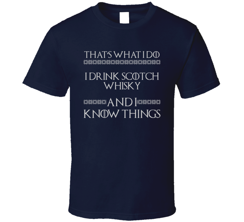 Order your very own That's What I Do I Drink Scotch Whisky And I Know Things Funny GOT Parody T Shirt. It won’t be around forever so buy yours here today! Shop our huge selection of high quality, graphic apparel. Each design is offered on a variety of sizes and styles including; t shirts, hoodies, aprons and even baby one-pieces! This product is pre-treated to ensure quality and longevity of the graphic.
