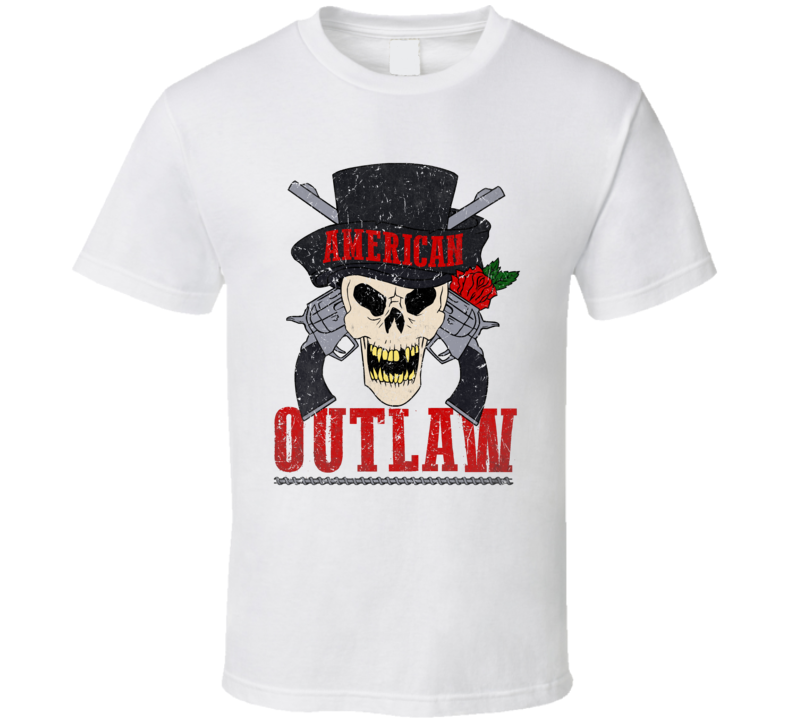 American Outlaw USA Cowboy Gunslinger Skull Fan T Shirt