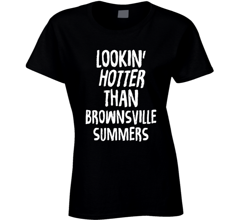 Order your very own Lookin' Hotter Than Brownsville Summers Trending Fashion T Shirt. It won’t be around forever so buy yours here today! Shop our huge selection of high quality, graphic apparel. Each design is offered on a variety of sizes and styles including; t shirts, hoodies, aprons and even baby one-pieces! This product is pre-treated to ensure quality and longevity of the graphic.