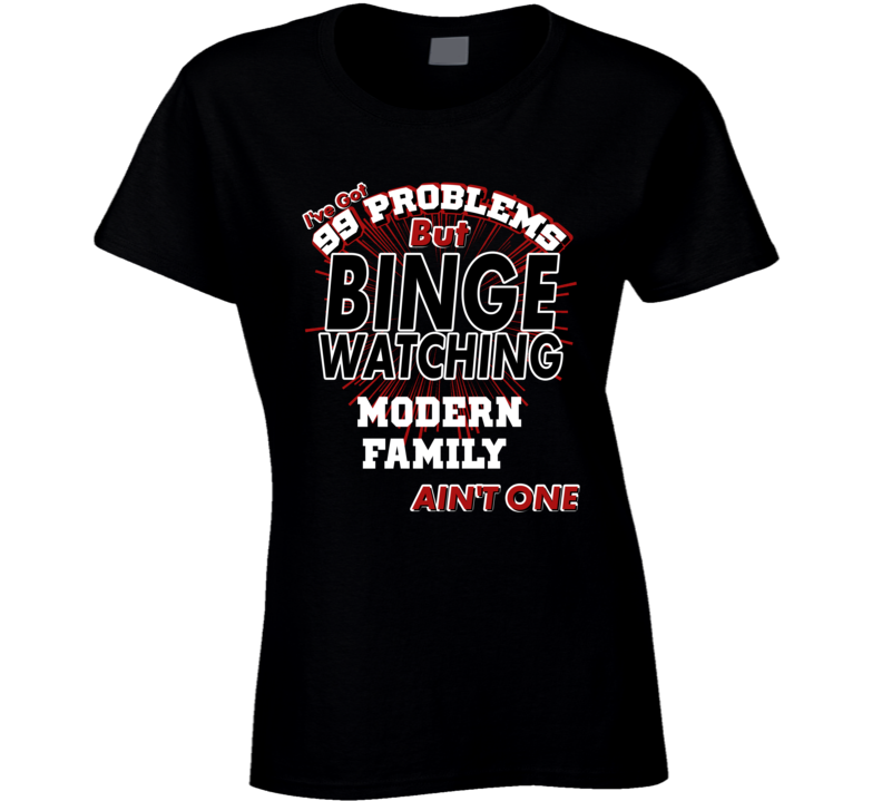 Order your very own Modern Family 99 Problems Binge Watching TV Parody Fan T Shirt. It won’t be around forever so buy yours here today! Shop our huge selection of high quality, graphic apparel. Each design is offered on a variety of sizes and styles including; t shirts, hoodies, aprons and even baby one-pieces! This product is pre-treated to ensure quality and longevity of the graphic.