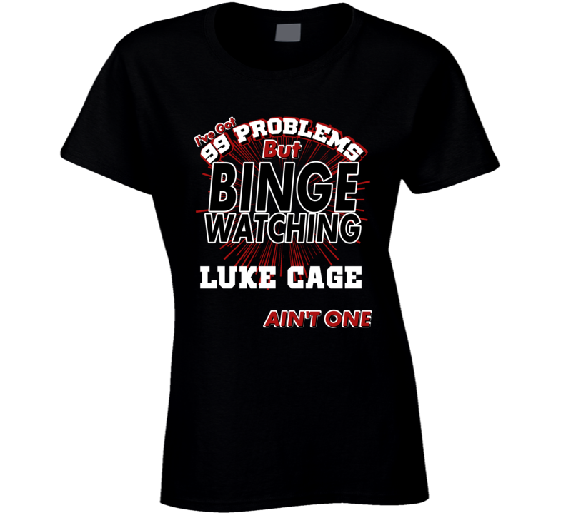 Order your very own Luke Cage 99 Problems Binge Watching TV Parody Fan T Shirt. It won’t be around forever so buy yours here today! Shop our huge selection of high quality, graphic apparel. Each design is offered on a variety of sizes and styles including; t shirts, hoodies, aprons and even baby one-pieces! This product is pre-treated to ensure quality and longevity of the graphic.
