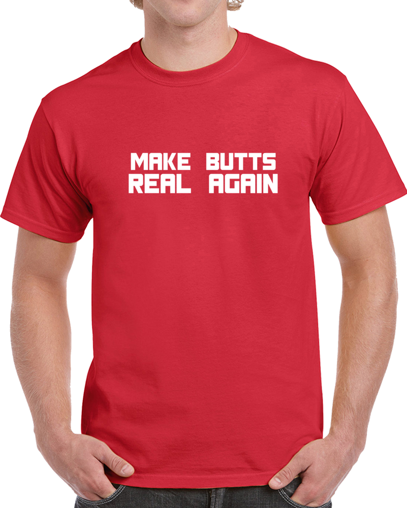 Order your very own Make Butts Real Again Funny Booty Trump Parody T Shirt. It won’t be around forever so buy yours here today! Shop our huge selection of high quality, graphic apparel. Each design is offered on a variety of sizes and styles including; t shirts, hoodies, aprons and even baby one-pieces! This product is pre-treated to ensure quality and longevity of the graphic.