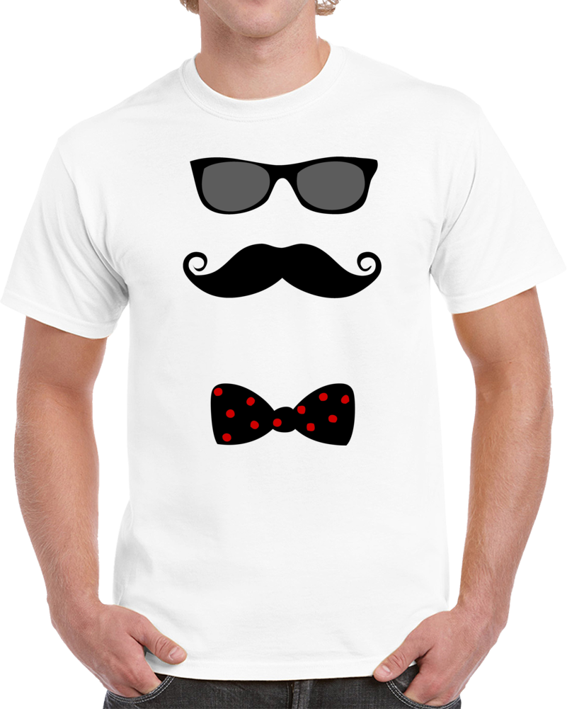 Hipster Mustache Bow Tie Glasses Funny Parody T Shirt