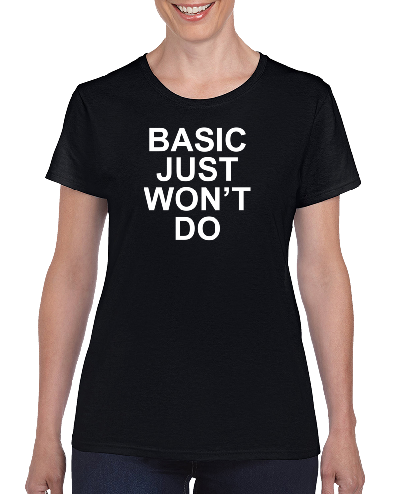 Order your very own Basic Just Won't Do Cool Funny Quote T Shirt. It won’t be around forever so buy yours here today! Shop our huge selection of high quality, graphic apparel. Each design is offered on a variety of sizes and styles including; t shirts, hoodies, aprons and even baby one-pieces! This product is pre-treated to ensure quality and longevity of the graphic.