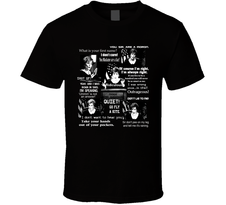 Order your very own Judge Judy Quotes Funny Tv Fan T Shirt. It won’t be around forever so buy yours here today! Shop our huge selection of high quality, graphic apparel. Each design is offered on a variety of sizes and styles including; t shirts, hoodies, aprons and even baby one-pieces! This product is pre-treated to ensure quality and longevity of the graphic.