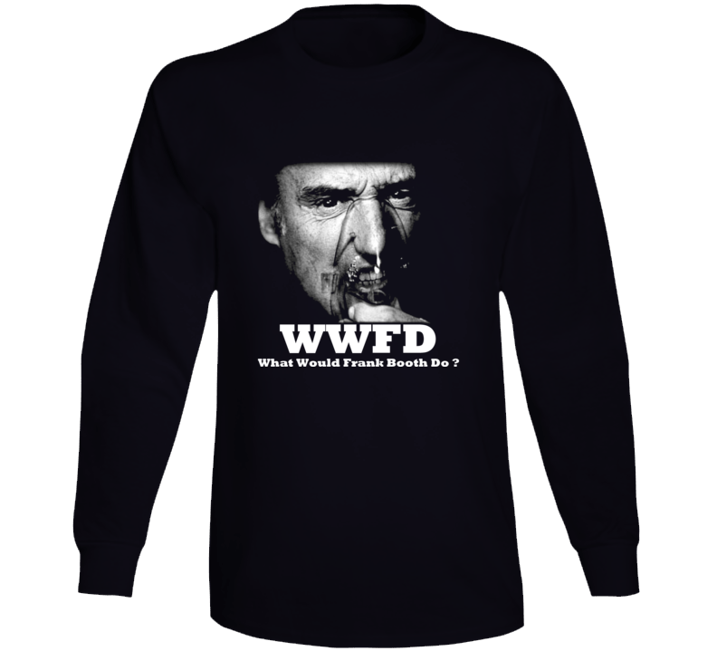 Order your very own Wwfd What Would Frank Booth Do Blue Velvet Long Sleeve T Shirt. It won’t be around forever so buy yours here today! Shop our huge selection of high quality, graphic apparel. Each design is offered on a variety of sizes and styles including; t shirts, hoodies, aprons and even baby one-pieces! This product is pre-treated to ensure quality and longevity of the graphic.