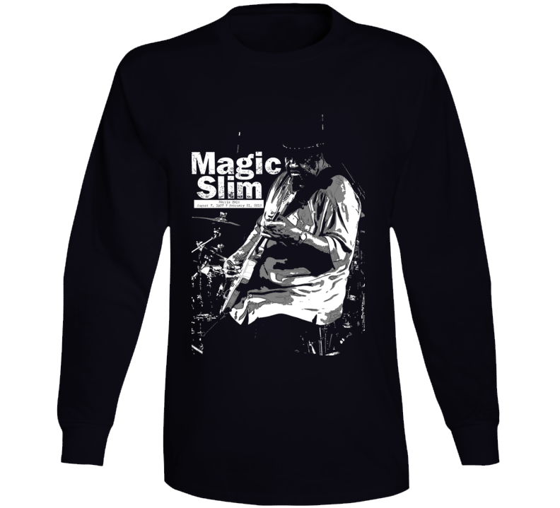 Order your very own Magic Slim Blues Guitarist Chicago Rip Legend Music Fan Long Sleeve T Shirt. It won’t be around forever so buy yours here today! Shop our huge selection of high quality, graphic apparel. Each design is offered on a variety of sizes and styles including; t shirts, hoodies, aprons and even baby one-pieces! This product is pre-treated to ensure quality and longevity of the graphic.