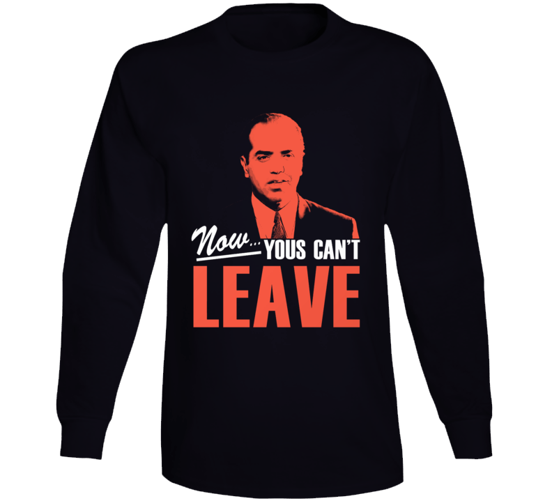 Order your very own Chazz Bronx Tale Now Yous Can't Leave Movie Long Sleeve T Shirt. It won’t be around forever so buy yours here today! Shop our huge selection of high quality, graphic apparel. Each design is offered on a variety of sizes and styles including; t shirts, hoodies, aprons and even baby one-pieces! This product is pre-treated to ensure quality and longevity of the graphic.