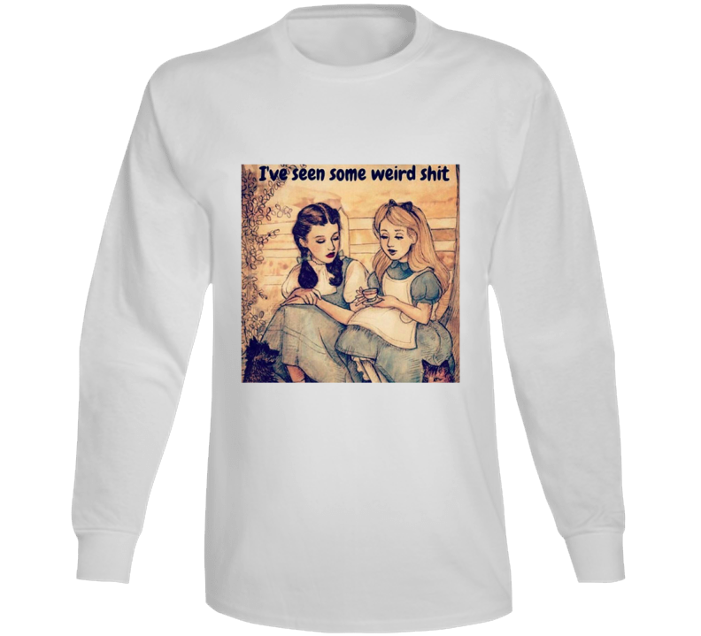 Order your very own Alice And Dorothy I've Seen Some Weird Funny Parody Meme Long Sleeve T Shirt. It won’t be around forever so buy yours here today! Shop our huge selection of high quality, graphic apparel. Each design is offered on a variety of sizes and styles including; t shirts, hoodies, aprons and even baby one-pieces! This product is pre-treated to ensure quality and longevity of the graphic.