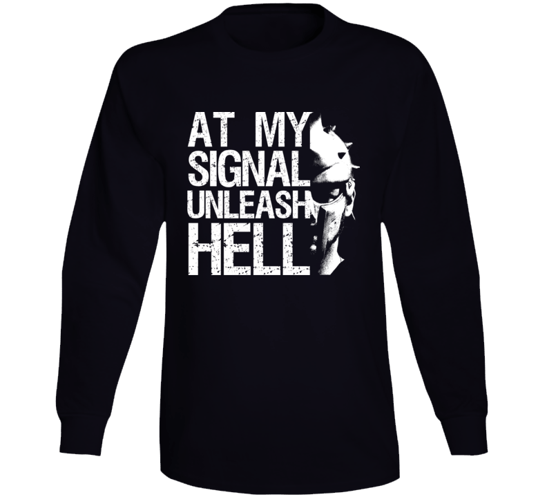 Order your very own Gladiator Unleash Hell Russell Crowe Movie Roman T Long Sleeve T Shirt. It won’t be around forever so buy yours here today! Shop our huge selection of high quality, graphic apparel. Each design is offered on a variety of sizes and styles including; t shirts, hoodies, aprons and even baby one-pieces! This product is pre-treated to ensure quality and longevity of the graphic.
