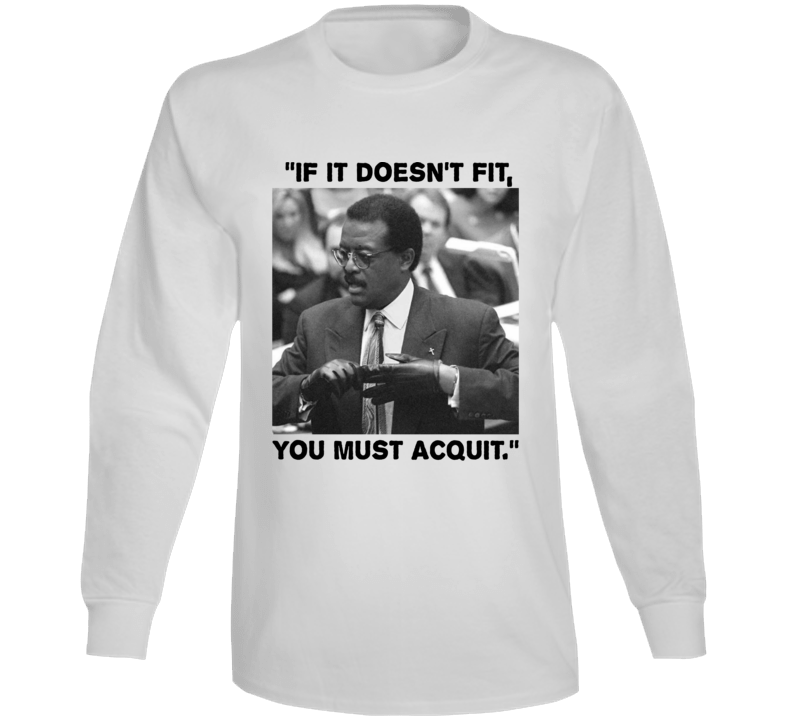Order your very own Johnnie Cochrane Oj Simpson Fit Acquit Long Sleeve T Shirt. It won’t be around forever so buy yours here today! Shop our huge selection of high quality, graphic apparel. Each design is offered on a variety of sizes and styles including; t shirts, hoodies, aprons and even baby one-pieces! This product is pre-treated to ensure quality and longevity of the graphic.