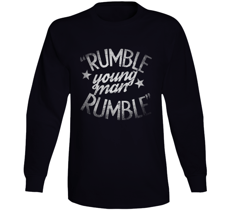 Order your very own Rumble Young Man Rumble Boxing Fan Long Sleeve T Shirt. It won’t be around forever so buy yours here today! Shop our huge selection of high quality, graphic apparel. Each design is offered on a variety of sizes and styles including; t shirts, hoodies, aprons and even baby one-pieces! This product is pre-treated to ensure quality and longevity of the graphic.
