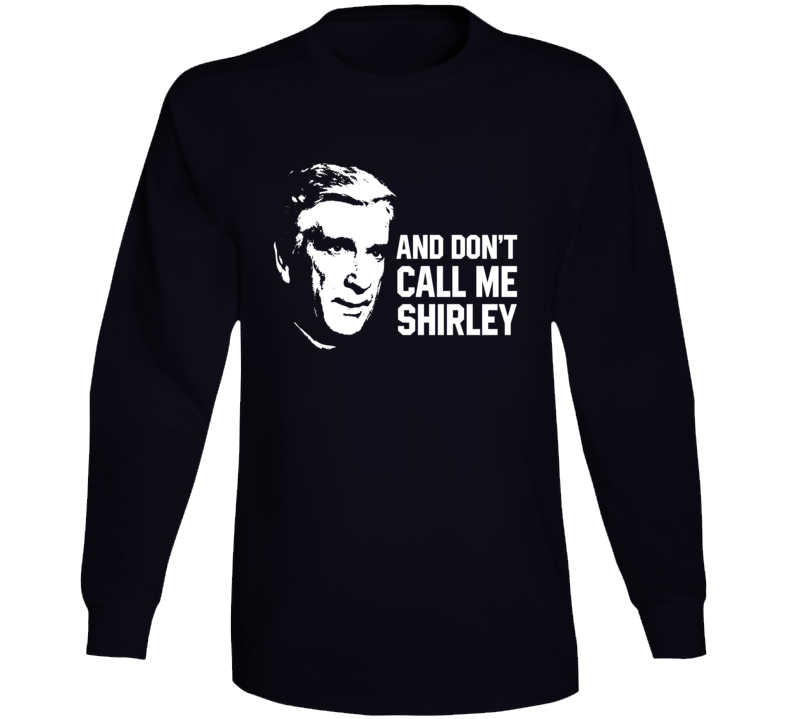 Order your very own Don't Call Me Shirley Quote Airplane Leslie Nielsen Funny Parody Movie Fan Long Sleeve T Shirt. It won’t be around forever so buy yours here today! Shop our huge selection of high quality, graphic apparel. Each design is offered on a variety of sizes and styles including; t shirts, hoodies, aprons and even baby one-pieces! This product is pre-treated to ensure quality and longevity of the graphic.
