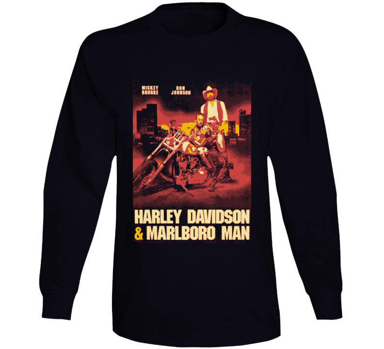 Order your very own Harley Davidson & The Malboro Man Don Johnson Mickey Rourke Movie Long Sleeve T Shirt. It won’t be around forever so buy yours here today! Shop our huge selection of high quality, graphic apparel. Each design is offered on a variety of sizes and styles including; t shirts, hoodies, aprons and even baby one-pieces! This product is pre-treated to ensure quality and longevity of the graphic.