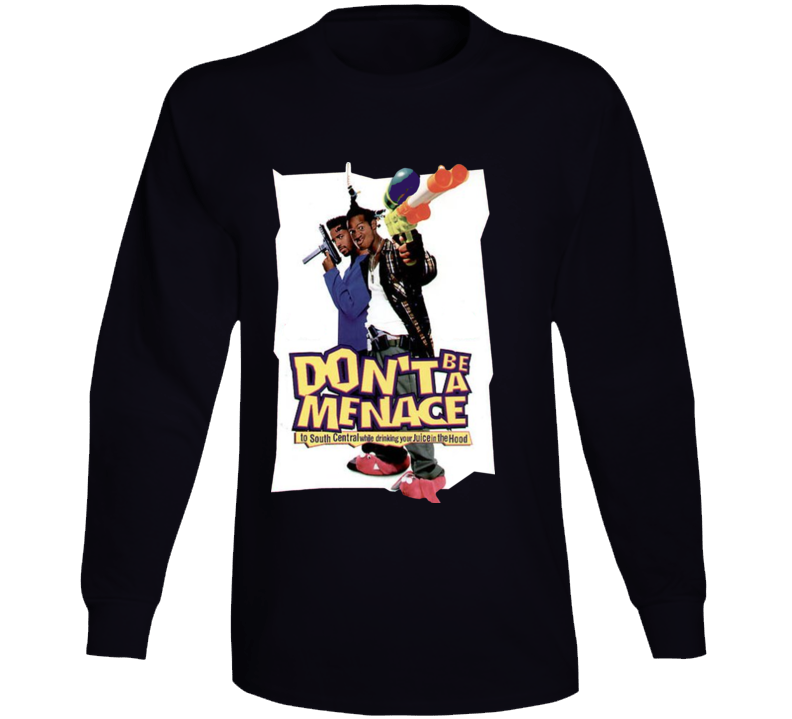 Order your very own Don't Be A Menace To South Central While Drinking Your Juice In The Hood Long Sleeve T Shirt. It won’t be around forever so buy yours here today! Shop our huge selection of high quality, graphic apparel. Each design is offered on a variety of sizes and styles including; t shirts, hoodies, aprons and even baby one-pieces! This product is pre-treated to ensure quality and longevity of the graphic.