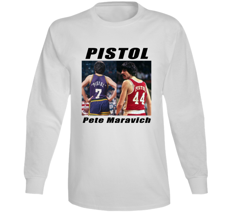 Order your very own Pistol Pete Maravich Legend Basketball Goat Fan Long Sleeve T Shirt. It won’t be around forever so buy yours here today! Shop our huge selection of high quality, graphic apparel. Each design is offered on a variety of sizes and styles including; t shirts, hoodies, aprons and even baby one-pieces! This product is pre-treated to ensure quality and longevity of the graphic.