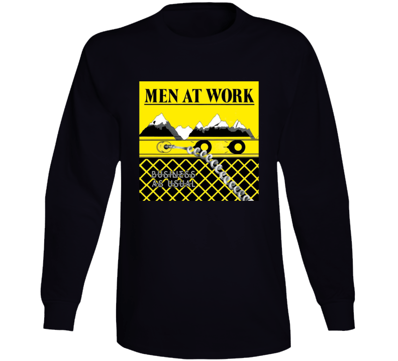 Order your very own Men At Work Business As Usual Music Fan Long Sleeve T Shirt. It won’t be around forever so buy yours here today! Shop our huge selection of high quality, graphic apparel. Each design is offered on a variety of sizes and styles including; t shirts, hoodies, aprons and even baby one-pieces! This product is pre-treated to ensure quality and longevity of the graphic.